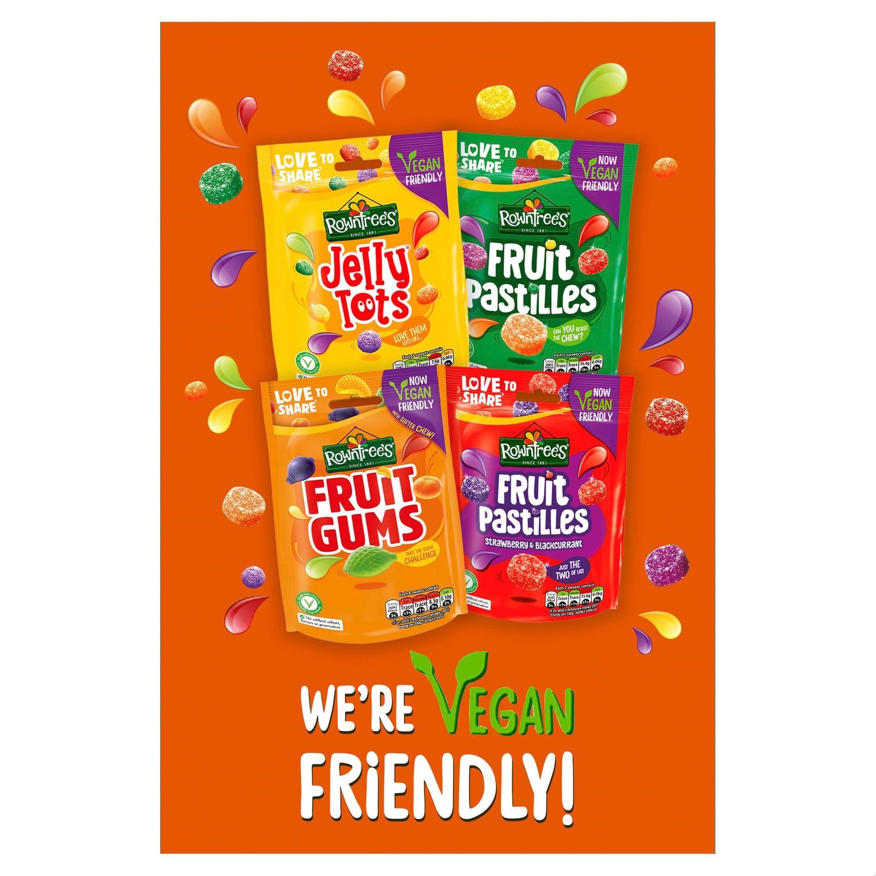 • Assorted fruit shapes and flavours: blackcurrant, lemon, strawberry, lime, and orange