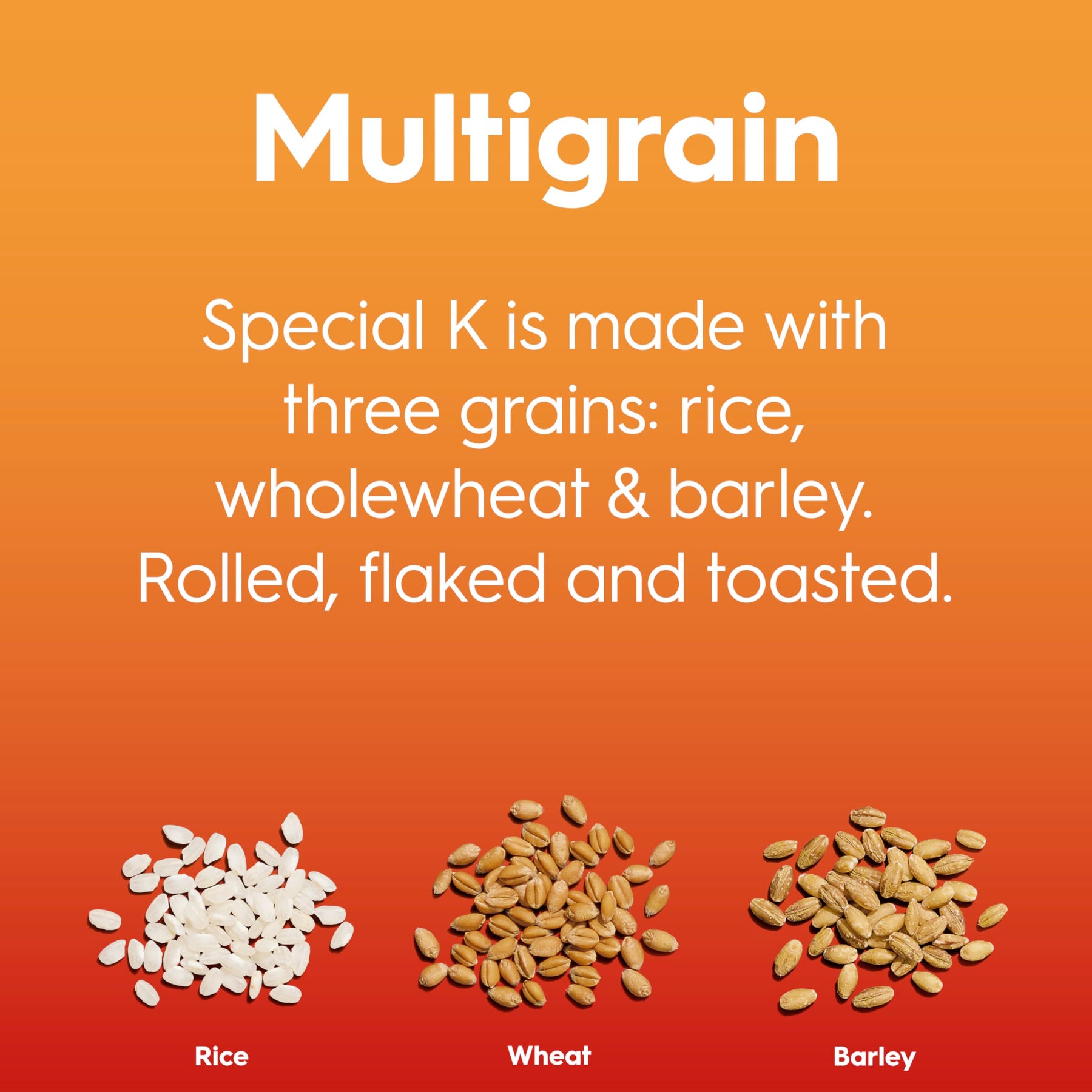 • Crunchy flakes of rice, whole wheat, and barley