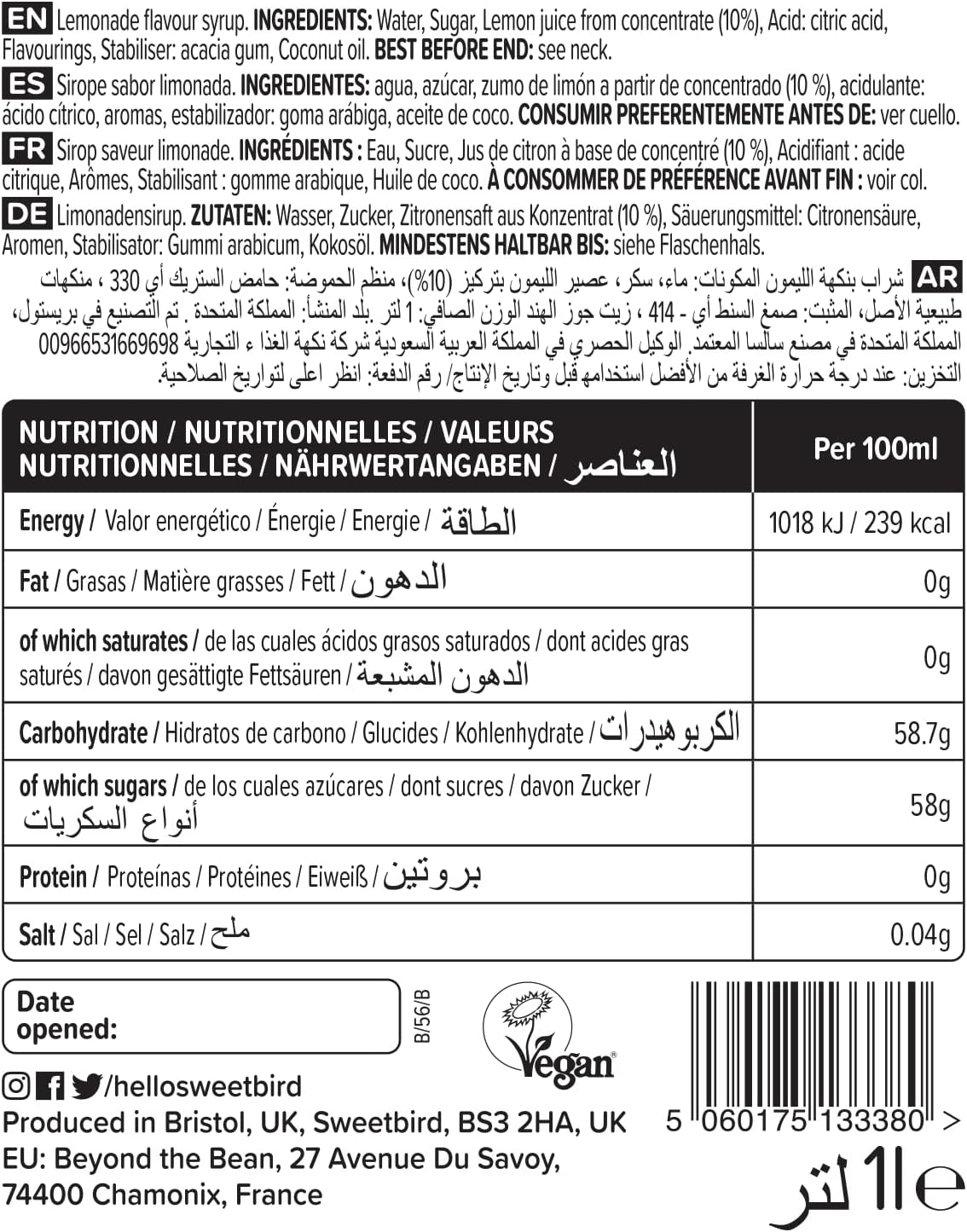 Sweetbird - Lemonade Syrup (1 Litre) - Vegan Friendly
