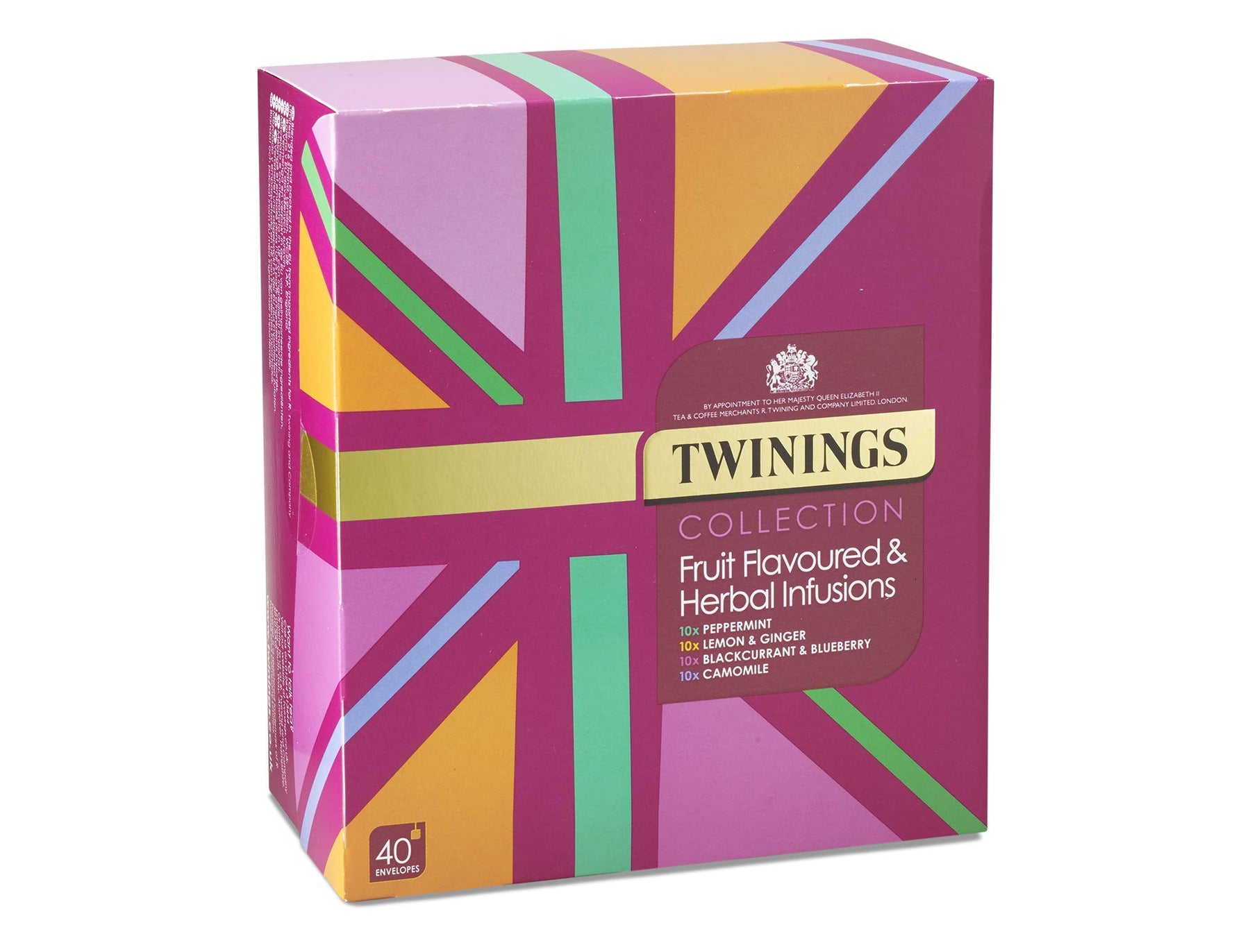 - Includes 10 teabags each of four premium herbal infusions: Peppermint, Lemon & Ginger, Blackcurrant & Blueberry, and Camomile