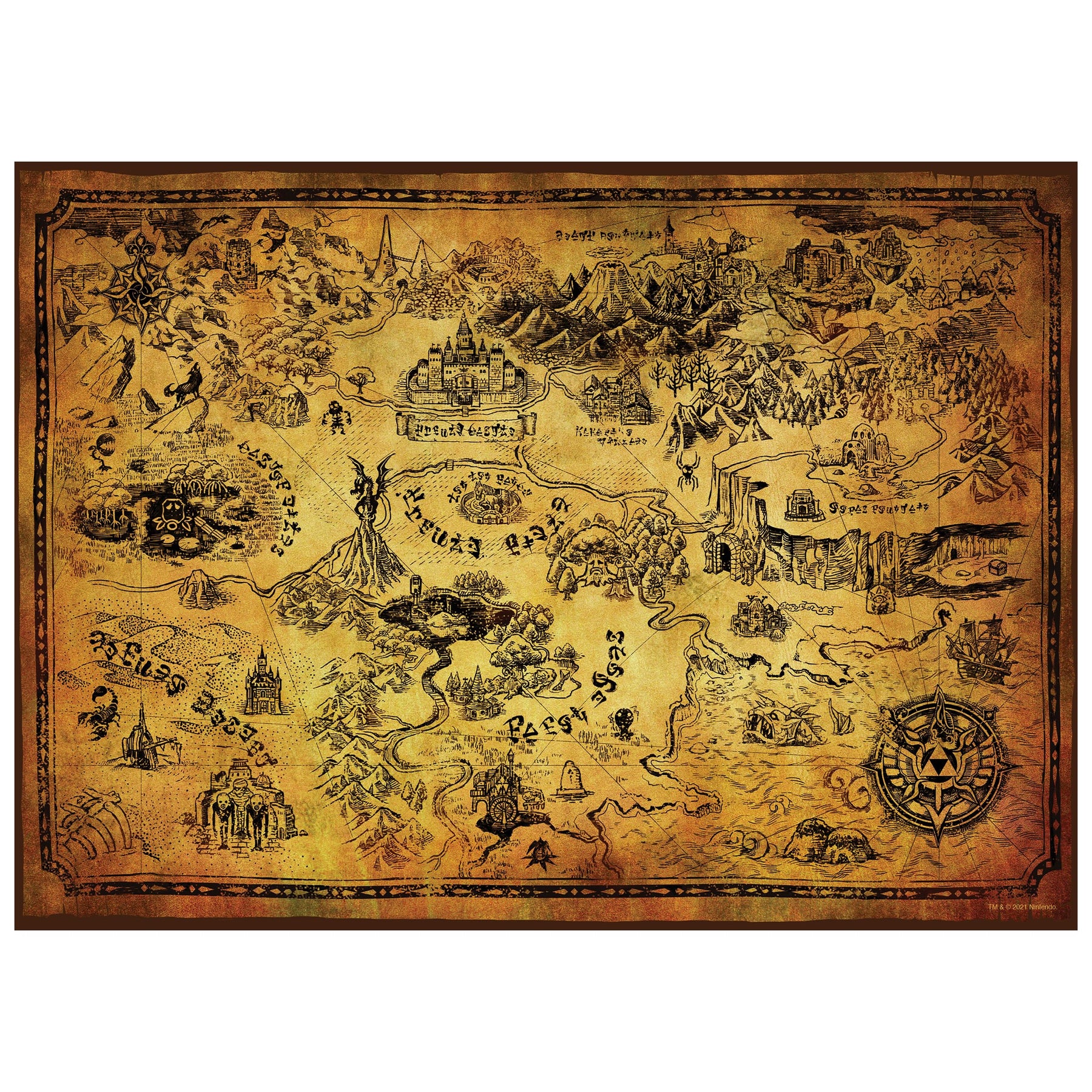 Explore the legendary land of Hyrule with this 1,000-piece jigsaw puzzle from USAopoly, featuring an antique-style map design inspired by The Legend of Zelda: Breath of the Wild. Assemble the iconic compass rose and piece together detailed landmarks from the beloved Nintendo adventure, perfect for fans and puzzle enthusiasts alike.