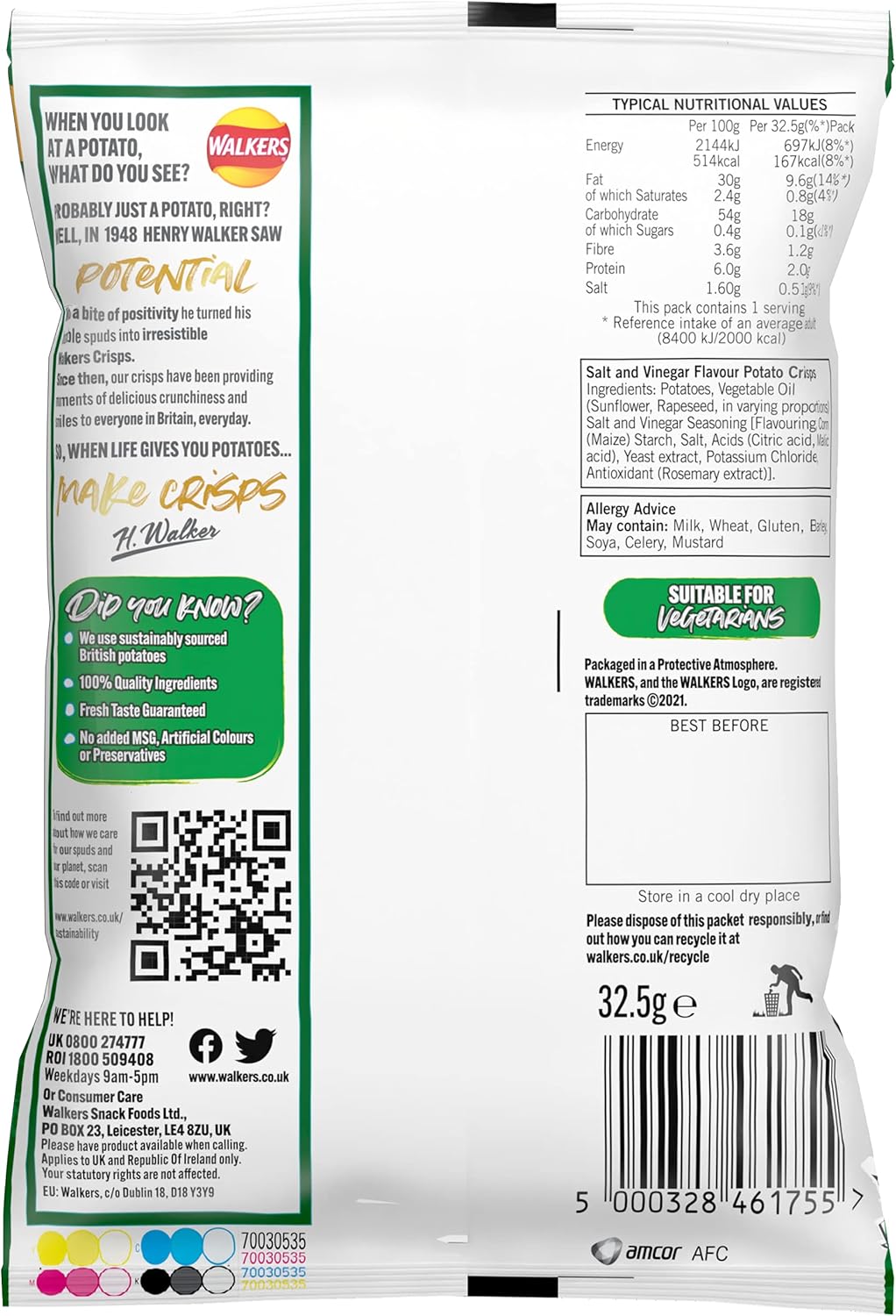 Walkers Salt & Vinegar Crisps 32.5g (Case of 32)