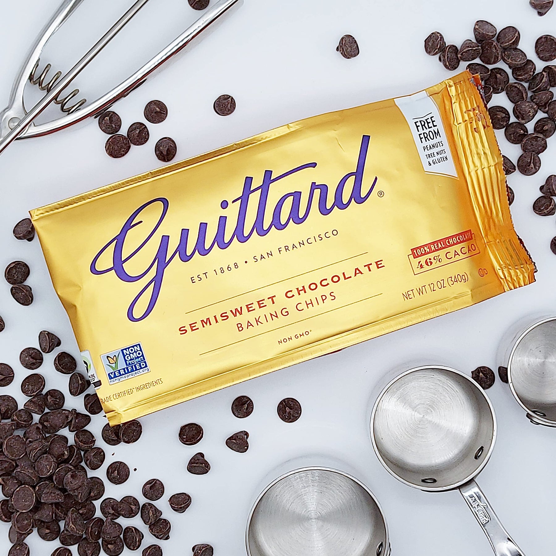 Experience the rich, smooth taste of Guittard Semi-Sweet Chocolate Baking Chips, crafted with 46% cacao for a perfect balance of sweetness and depth. Enhanced with real vanilla, these premium chocolate chips elevate cookies, brownies, cakes, and other baked treats with authentic, high-quality flavor.