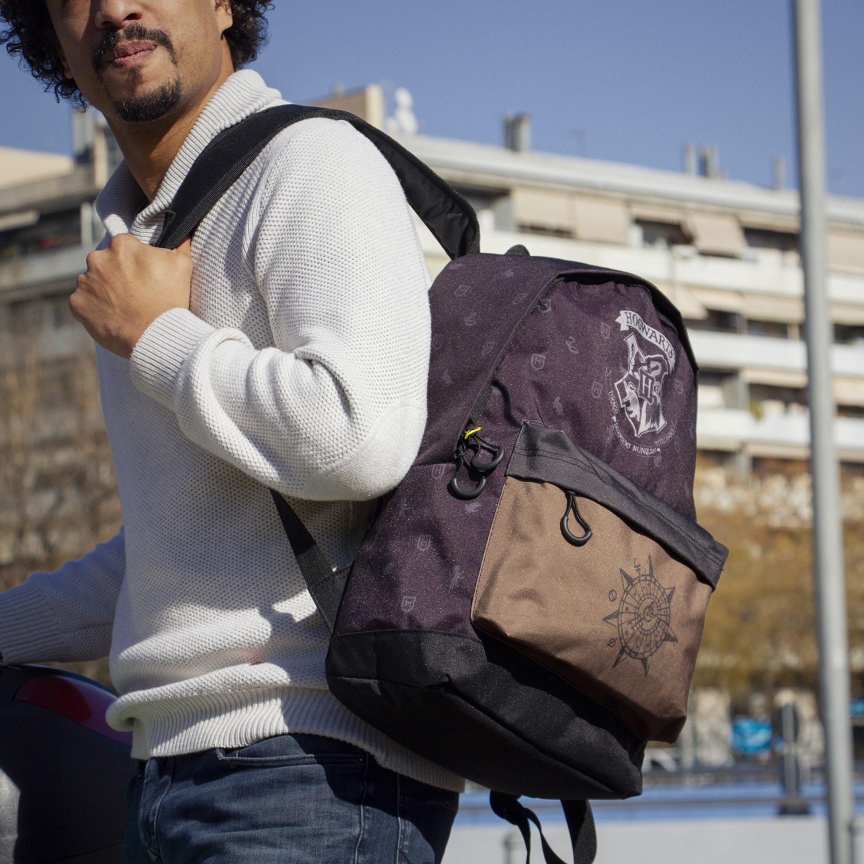 Lightweight urban backpack featuring a single main compartment for ample storage. Includes a convenient front pocket for quick access to essentials and adjustable padded shoulder straps for comfort during daily use or travel. Equipped with a rear trolley strap to securely attach to luggage. Designed with official Harry Potter-themed styling, this unisex backpack combines practical functionality with fan-favorite aesthetics.