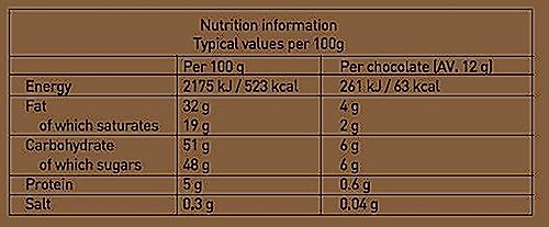 - Contains: Dark, Milk, and White Chocolate (with SOYA Lecithin), MILK, HAZELNUTS, ALMONDS, SULPHUR DIOXIDE, BARLEY, and natural flavorings