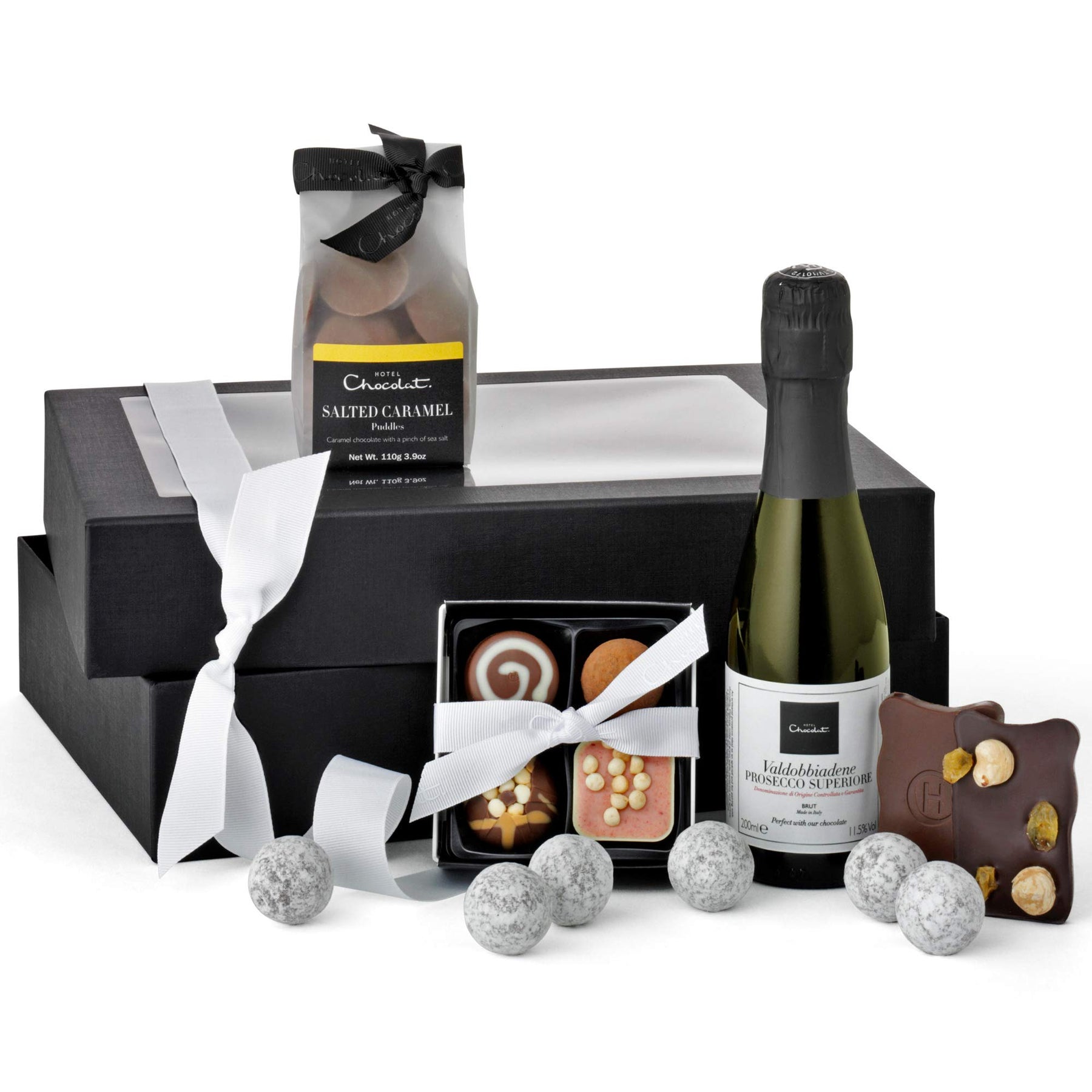 Celebrate life's special moments with Hotel Chocolat's luxurious Chocolate & Fizz Collection, a premium hamper combining rich chocolate treats with prosecco for the perfect congratulatory gift.