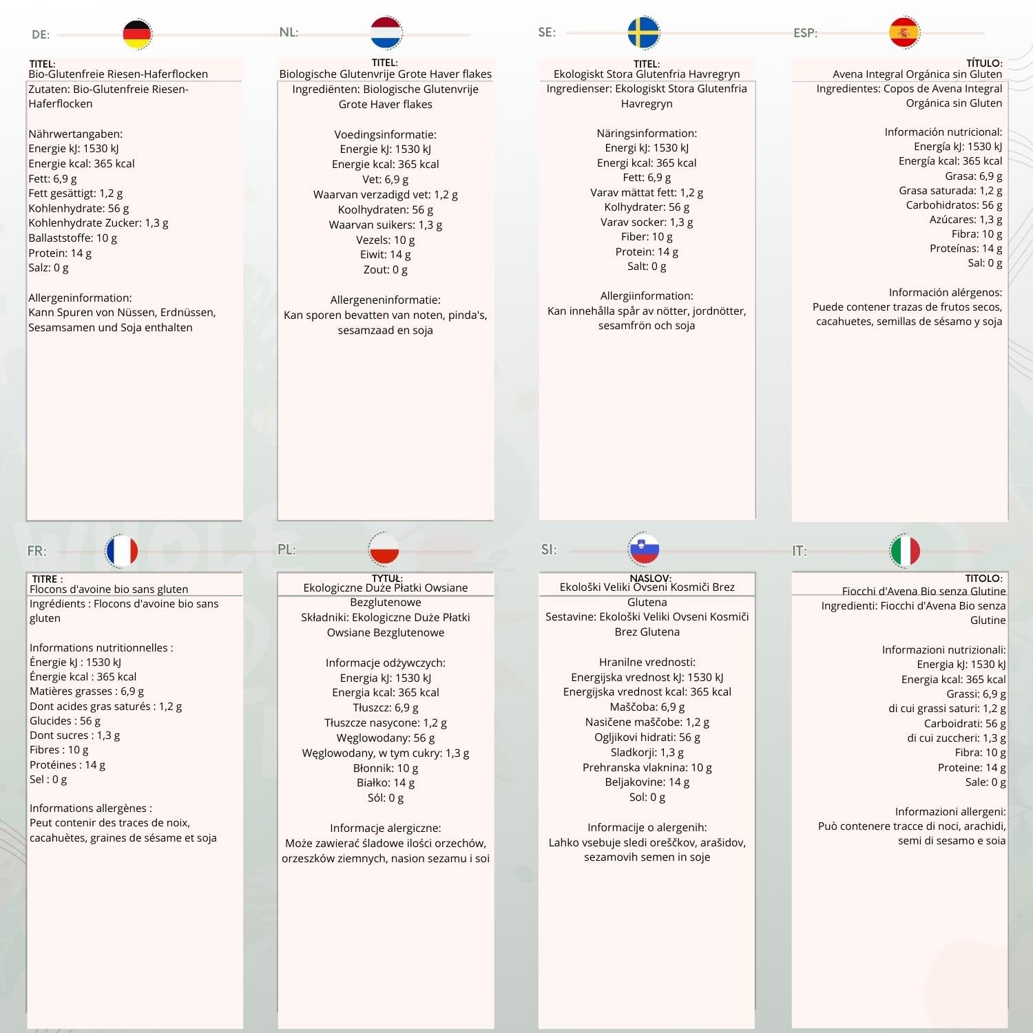 - Organic Gluten Free Jumbo Oat Flakes