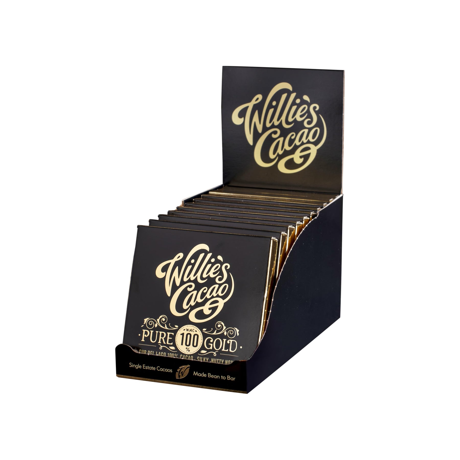 Willie's Cacao - Pure Gold 100% Cocoa Bar - 40g x 12 - No Added Sugar, Vegan, Dairy Free