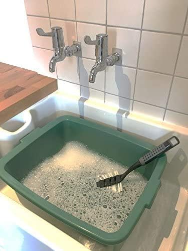 The Addis Plastic Butler Large Rectangular Bowl in metallic silver offers a durable and efficient solution for organizing kitchen and bathroom spaces. Its thoughtful design supports everyday cleaning tasks with a raised base that allows water to drain underneath, promoting faster drying and improved hygiene.