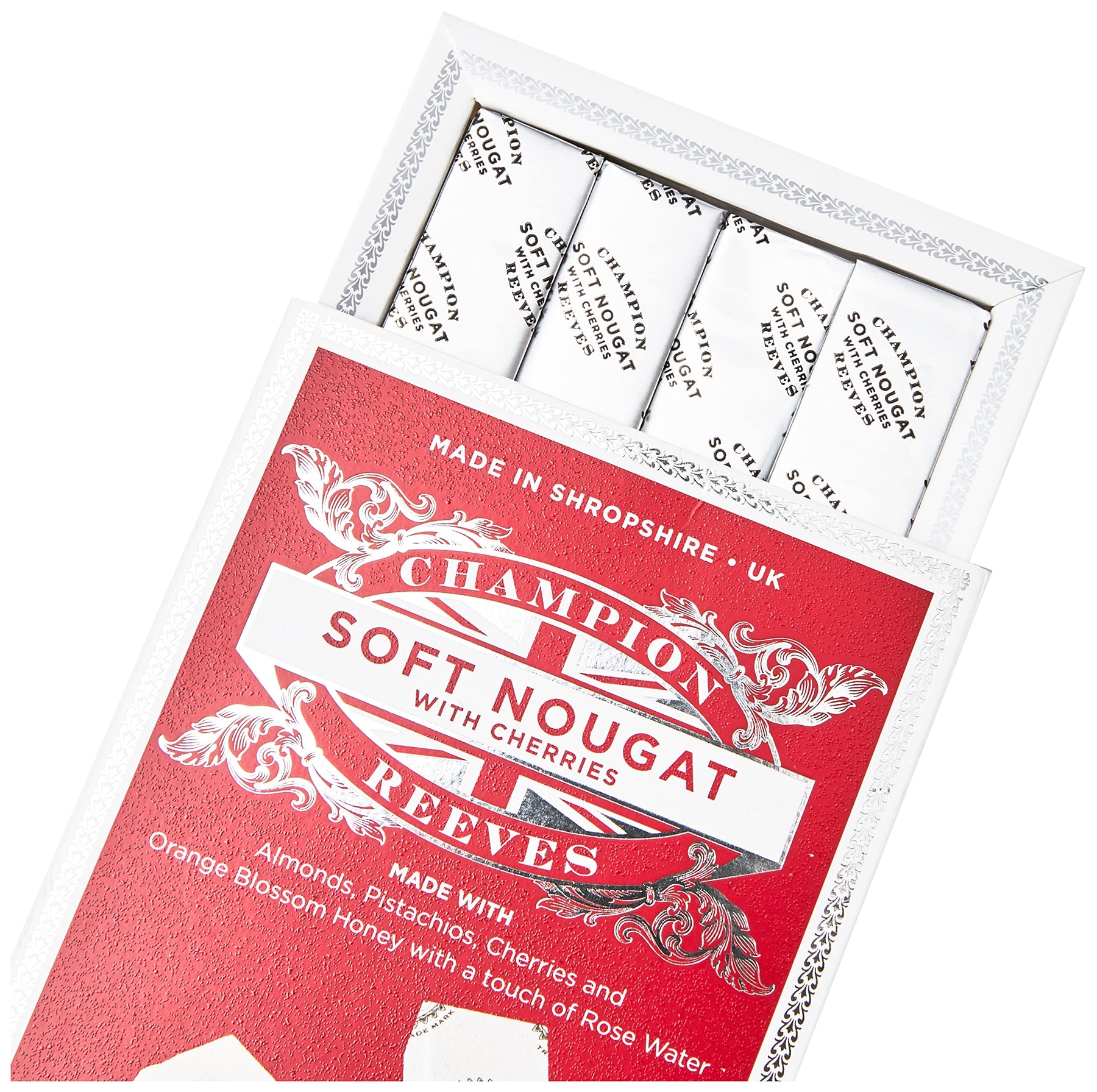 Enjoy the luxurious texture and rich flavor of Champion & Reeves Soft Nougat, crafted with Italian cherries, roasted pistachios, and blanched almonds, all bound with premium orange blossom honey. This artisanal confection combines traditional methods with high-quality ingredients for a gourmet candy experience in every bite.