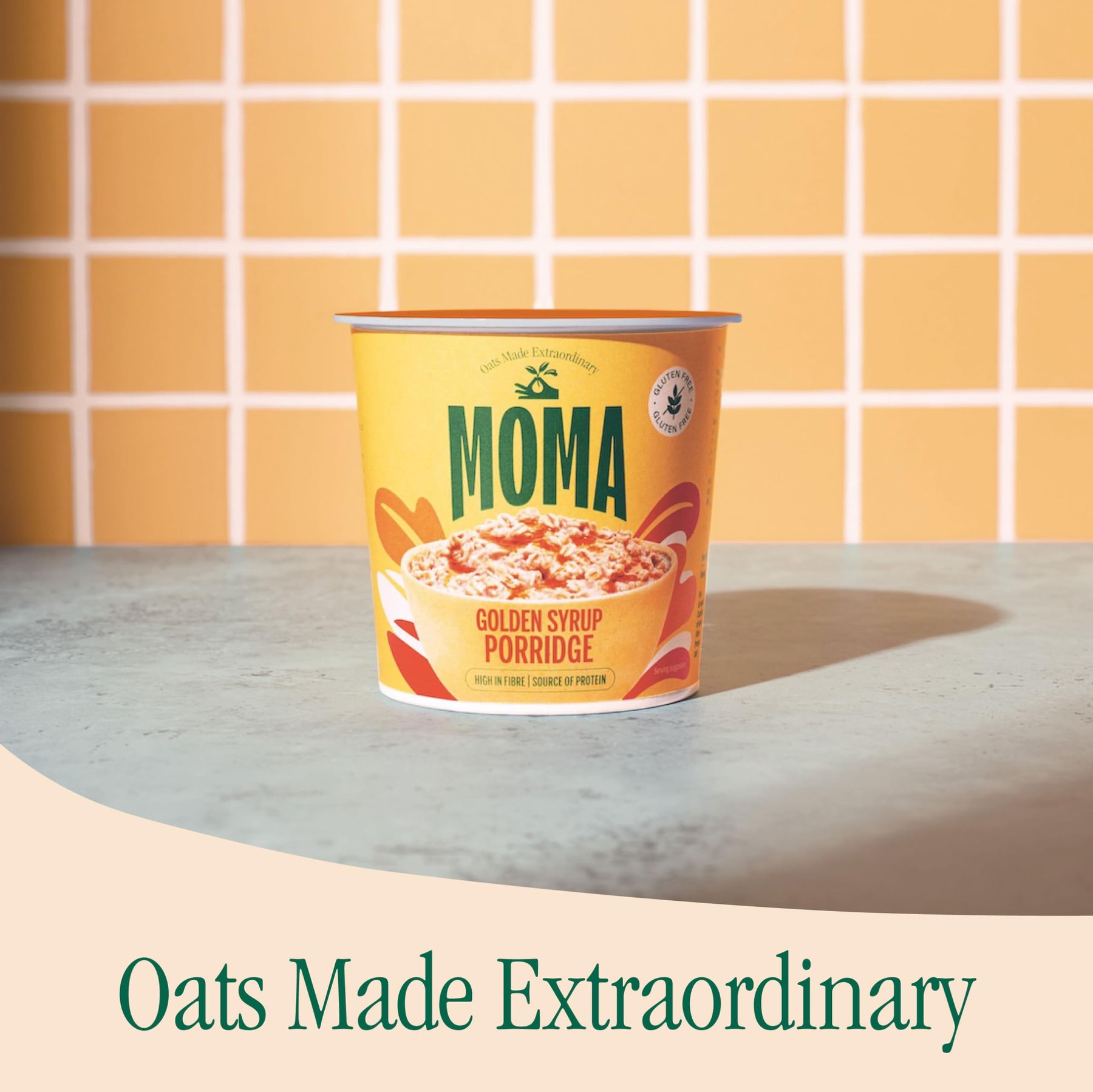 Made with wholegrain jumbo oats, these MOMA Instant Porridge Pots deliver a thick, creamy texture with the satisfying bite of proper whole flakes. Perfect for a quick and nutritious breakfast, simply add boiling water and enjoy. Flavoured with natural golden syrup, this porridge is a sweet and simple morning pick-me-up designed to fuel your day.