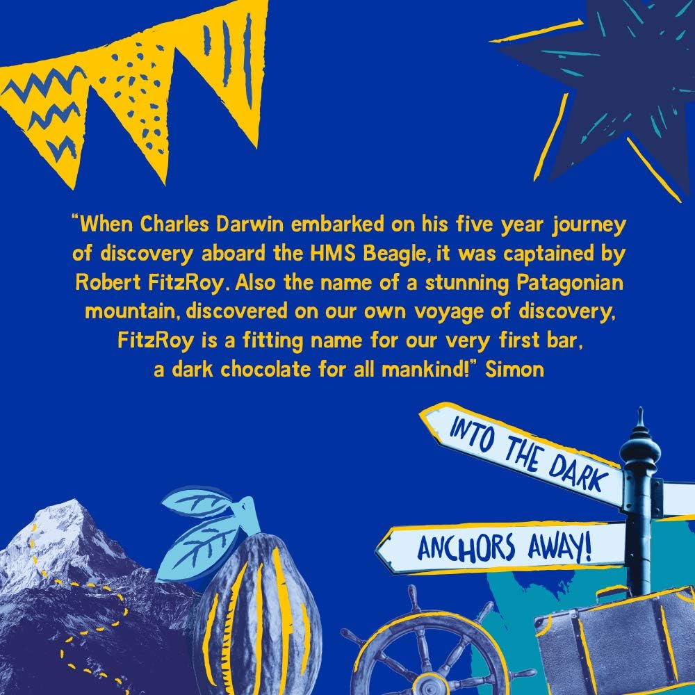 Indulge in Montezuma's FitzRoy, a rich and intense 74% cocoa dark chocolate bar crafted with organic ingredients and rooted in ethical values. Named after Captain Robert FitzRoy of the HMS Beagle and the majestic Patagonian mountain, this chocolate celebrates exploration, discovery, and a commitment to sustainability and quality.