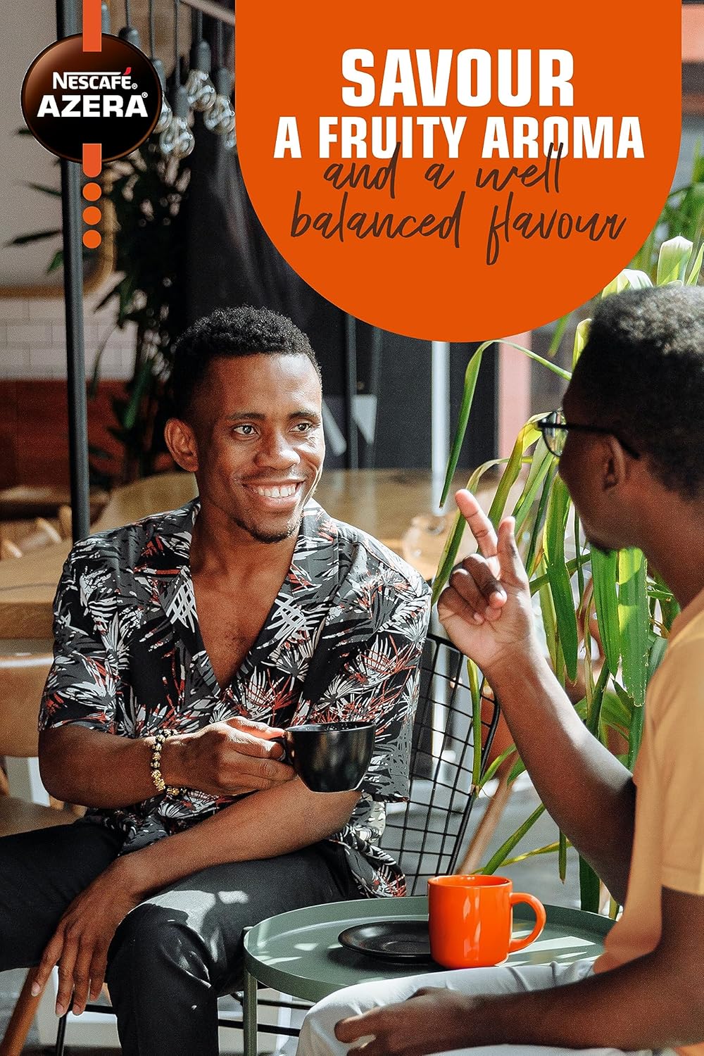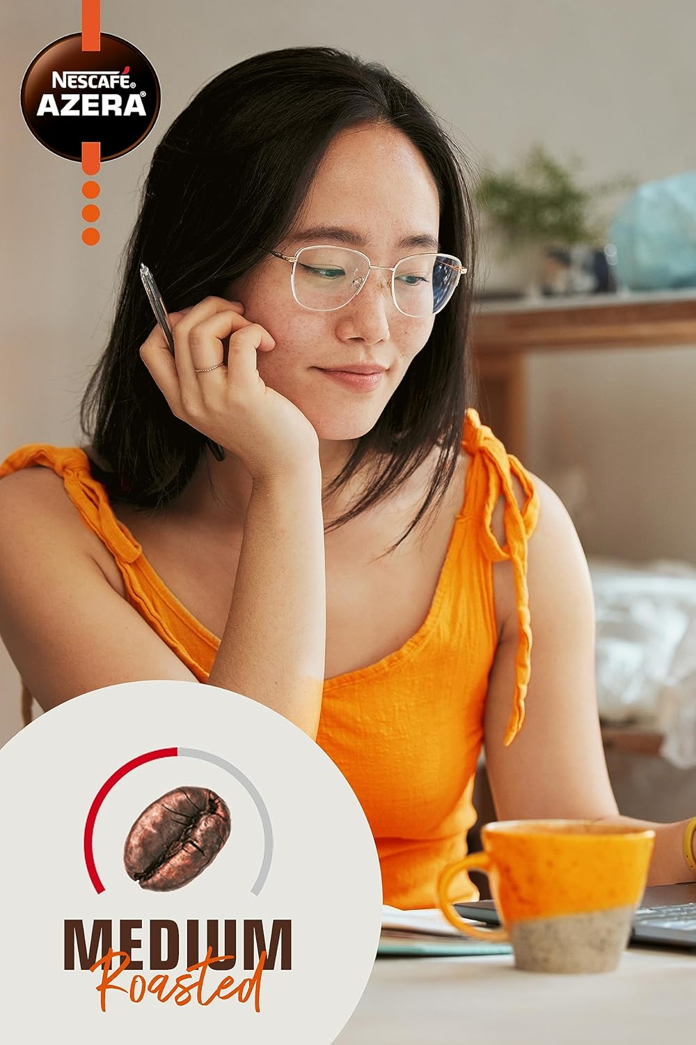 NESCAFÉ Azera Americano Instant Coffee brings the rich, bold taste of a café-style Americano straight to your home. Crafted from a blend of Robusta and Arabica coffee beans, with a special mix of instant and finely ground roasted coffee, each cup delivers a fruity aroma and well-balanced flavor for a truly satisfying experience.