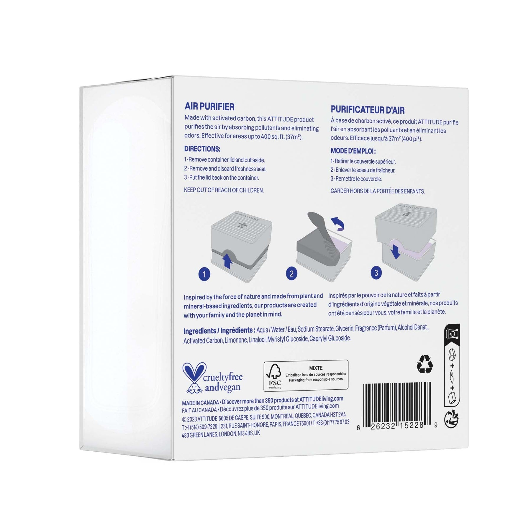 Refresh your indoor spaces naturally with the ATTITUDE Odor Eliminator, a plant-based air purifier designed to neutralize unpleasant smells and create a warm, inviting atmosphere. Infused with a soothing blend of lavender and eucalyptus, this air purifier uses activated charcoal to trap odors and contaminants, making it ideal for maintaining clean, fresh air in your home.