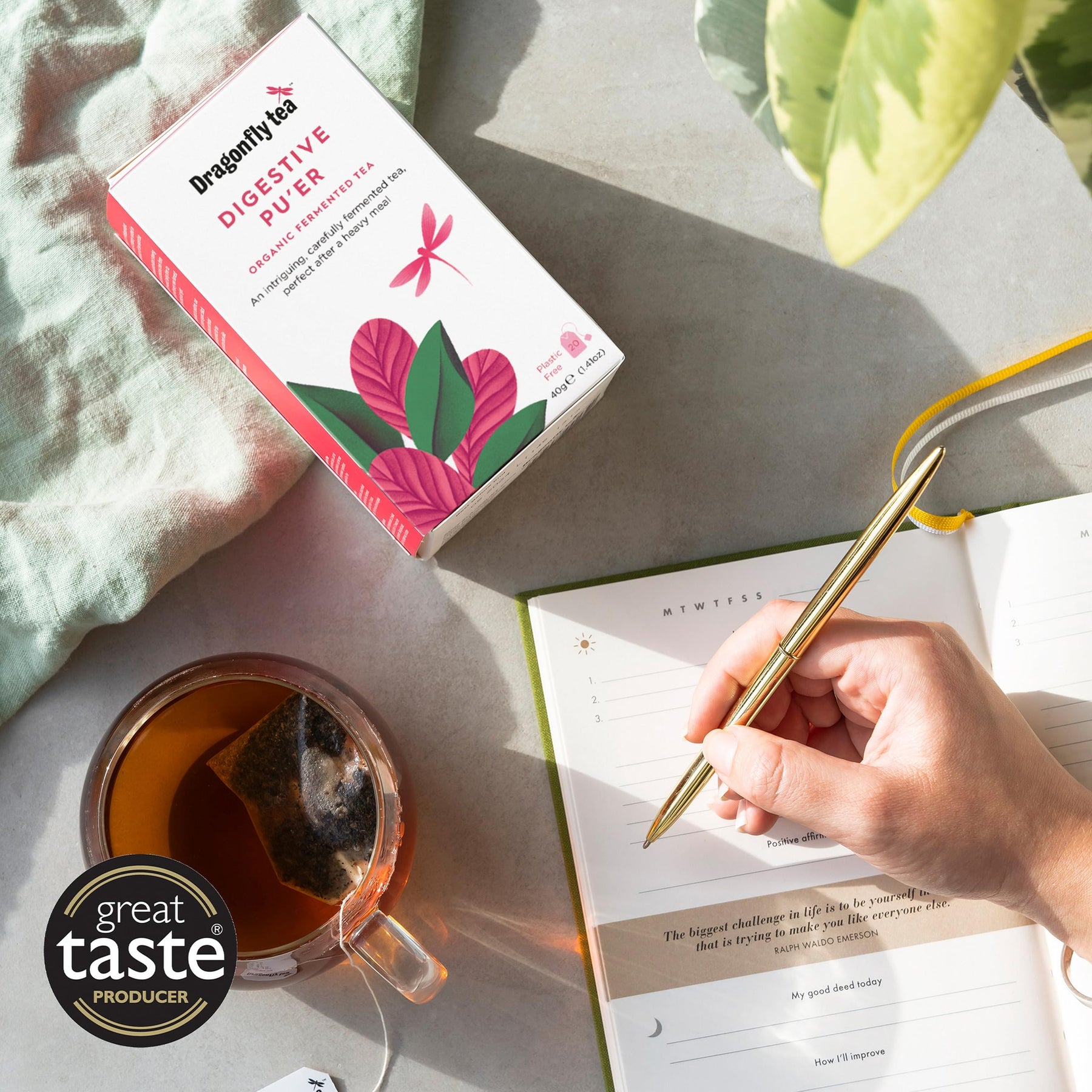 Experience the rich heritage of China's most celebrated fermented tea with Dragonfly Tea's Good Dragon Organic Pu'er. Sourced from Yunnan province along the ancient Tea Caravan route, this organically grown pu'er offers a robust and earthy flavor profile with a distinctive earthy sweetness, cherished by tea connoisseurs for over a thousand years.