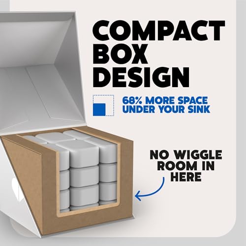 • Compact box design uses 68% less space for easier under-sink storage