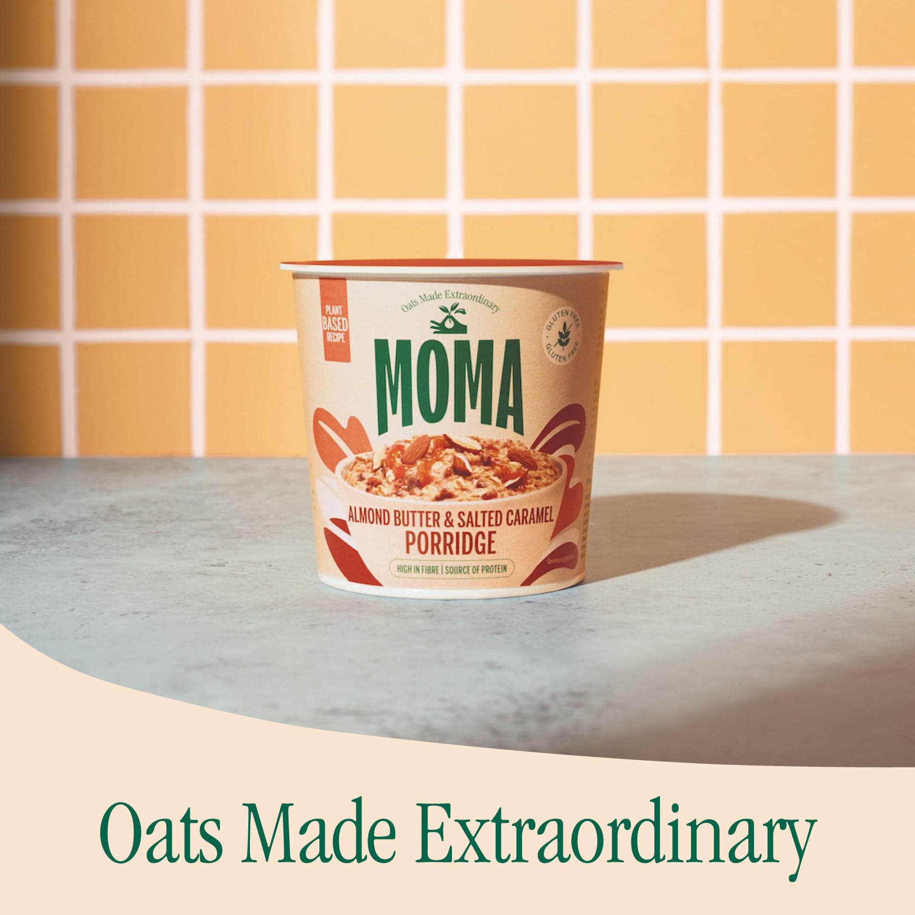 MOMA Almond Butter & Salted Caramel Instant Porridge Pots - Box of 12 x 55g - Gluten Free, Vegan, High in Fibre